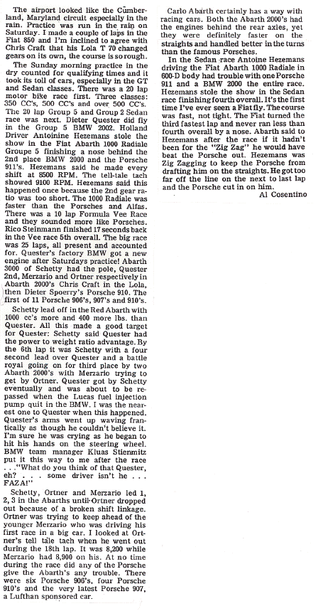 SUMMIT POINT, W. VA. Al Cosentino 2nd IN CLASS